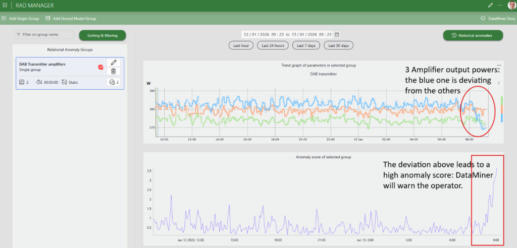 Relational Anomaly Detection (RAD) is DataMiner’s AI capability that monitors how parameters behave together, not just in isolation.