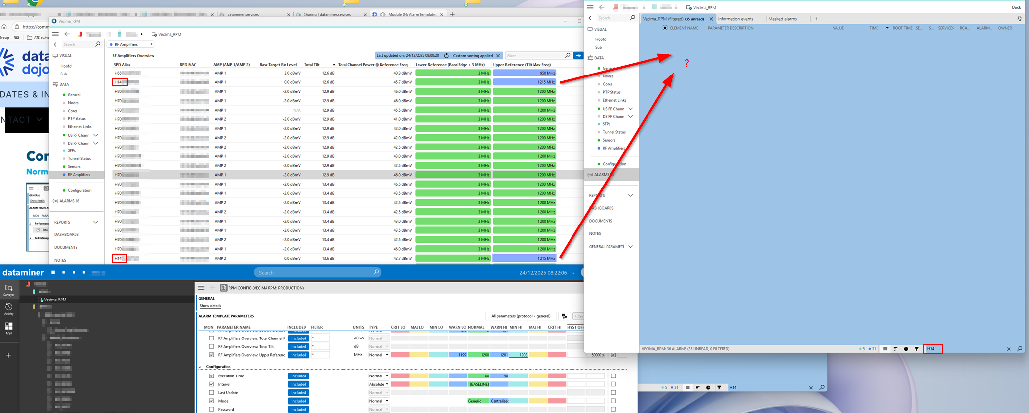 I had set a “hysteresis on” at value:"1202" after 50.000 seconds, and this only for “minor Hi” and an alarm if value:"1201" is warning hi as usual. In the element, you can see that it turns blue for H14xx1, but when I check the alarm, I don’t see it. It only appears after the hysteresis has disappeared.