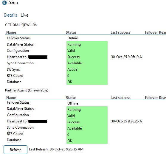 The status window relies does a more in depth check with every refresh, so if this gives green across the board, it usually is safe to say that the failover pair is healthy.
