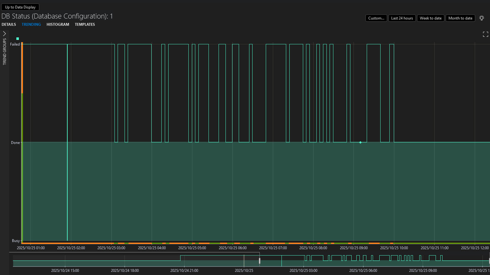 I have an alarm that triggers when polling to a database fails. Normally, the parameter transitions from Busy → Done when everything is working. However, when it enters a Failed state, it doesn’t stay there—it quickly goes back to Busy because the system retries. This creates a loop where the state alternates between Busy and Failed continuously.
