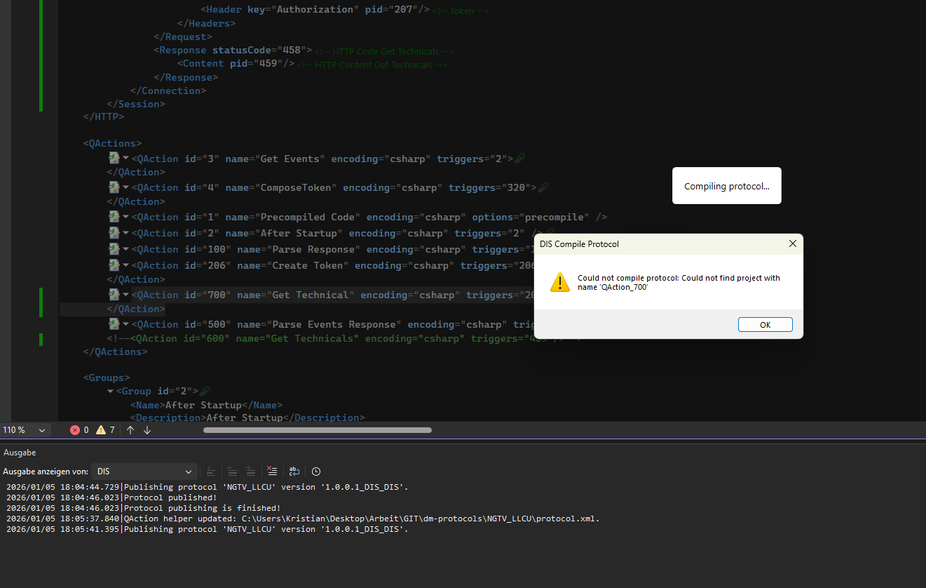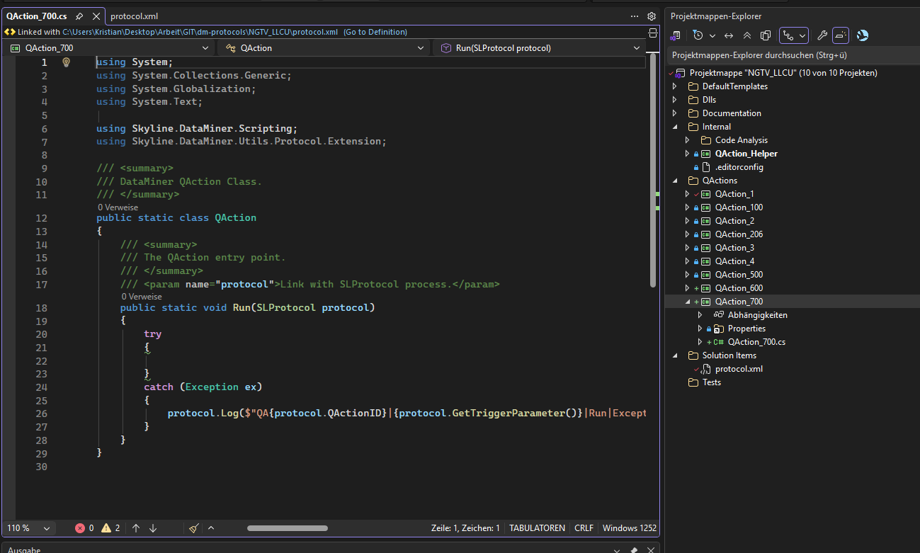 Also in Explorer i see the folder C:\Users\Kristian\Desktop\Arbeit\GIT\dm-protocols\NGTV_LLCU\QAction_700 and the project file QAction_700.csproj