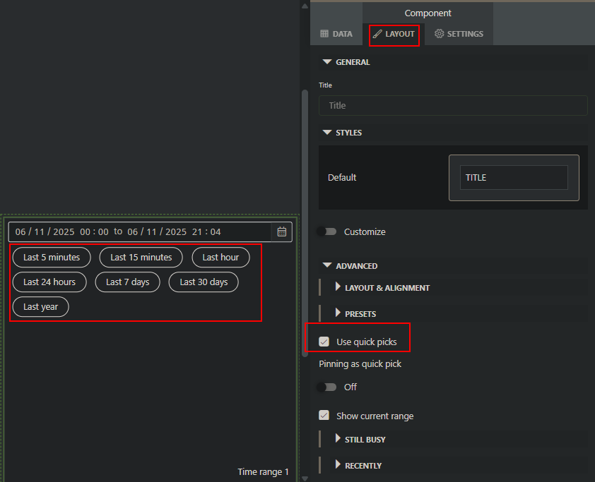 Thank you Miguel, but that's not the component I'm referring to. I want to configure the Default time range for a Timeline component. But it seems it's not available yet.