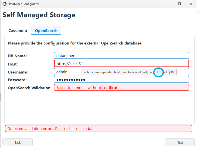 After installing a DataMiner Agent I trying to follow the steps in the DataMiner Configurator but I'm suck filling OpenSearch configuration form.