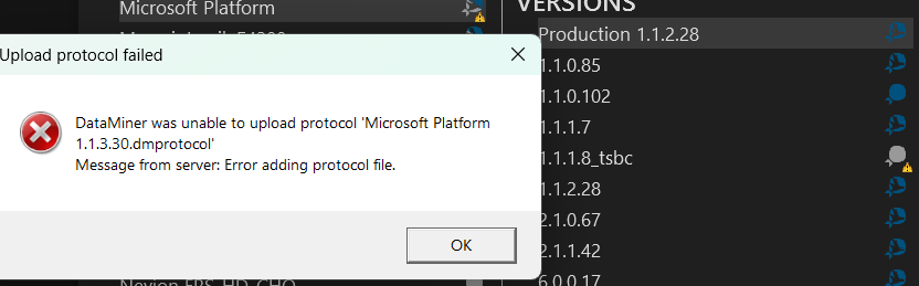 DataMiner was unable to upload protocol