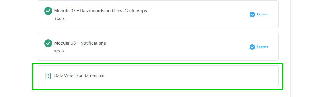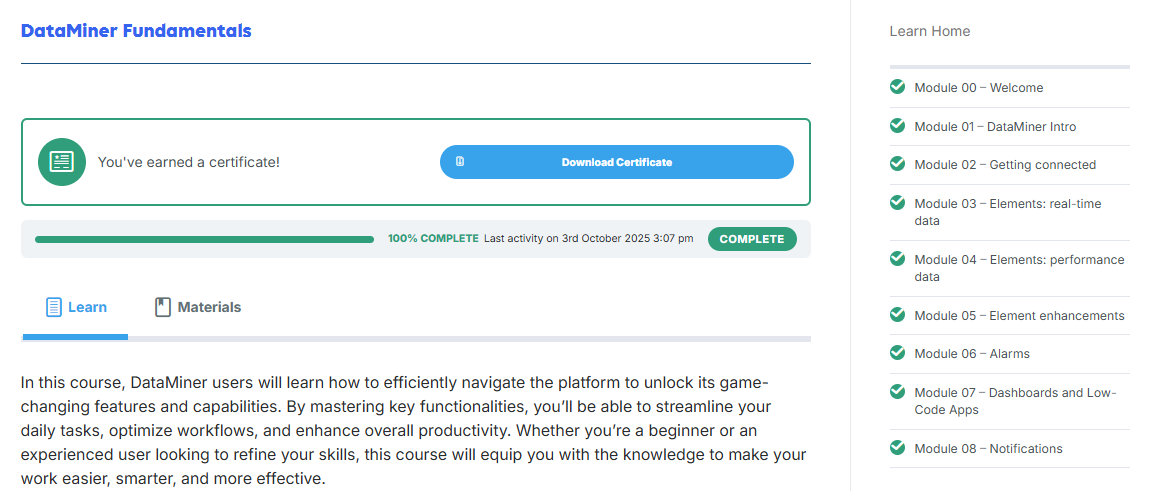 According to our records you completed 5 steps out of the 10 for the Fundamentals course. Could you please check whether a ‘Completed’ button is available at the bottom of the remaining modules? (see first screenshot)