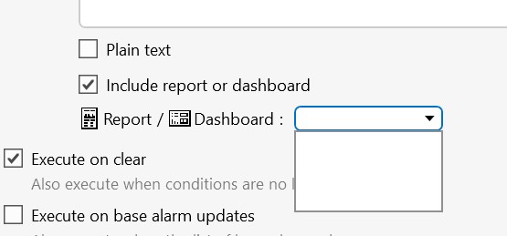 When trying to get the list of available dahboards from the send email form from a correlation rule the list is empty.