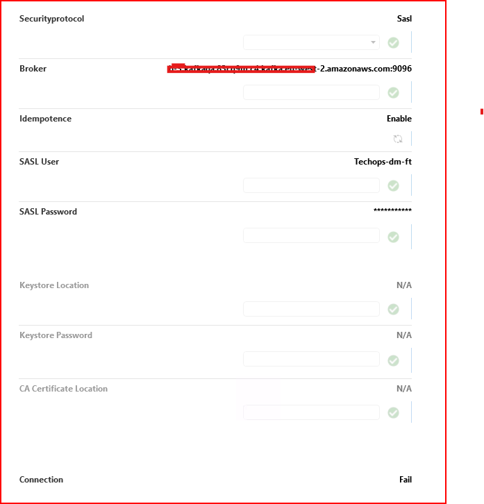 We’re having trouble getting the Generic Kafka Producer to start. Our Generic Kafka Consumer works fine using the same broker address and same SASL/PLAIN credentials, but the Producer fails during startup with: