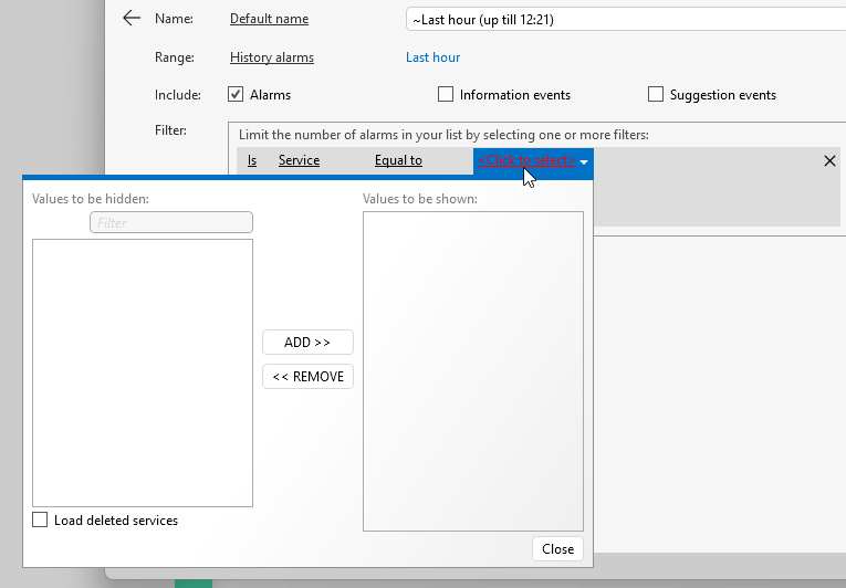 An element was deleted, but we would like to access its alarm history (via element name) of prior its deletion.
