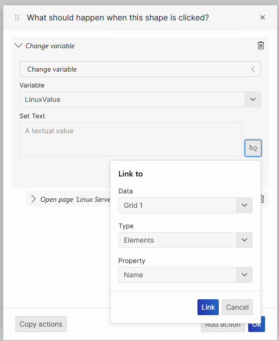 I tried doing this using variables, by adding a click action on the Grid to update a variable before opening the next page. I tested both an Element-type variable and a Text-type variable, but in both cases the page opens and the variable does not seem to update based on the clicked item. As a result, the second page opens without the context needed to apply the filters.