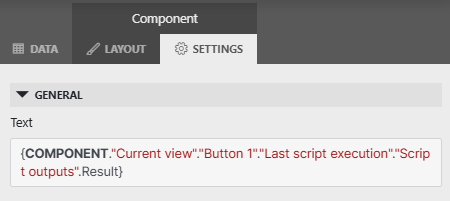 {COMPONENT."Current view"."Button 1"."Last script execution"."Script outputs".}
