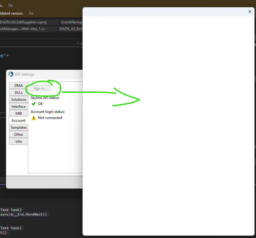 When I click on the "Sign in..." button in DIS Settings (DIS 3.1.18 + Visual Studio 2022):