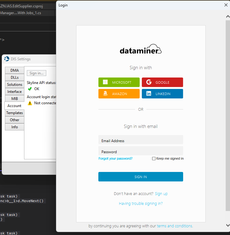 I am currently unable to sign in to DataMiner Integration Studio (DIS) using my account.