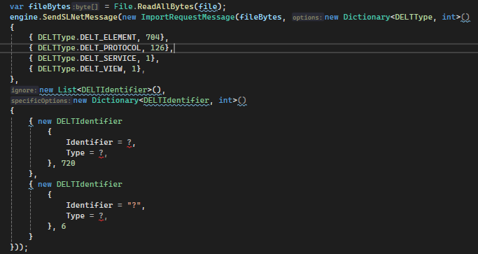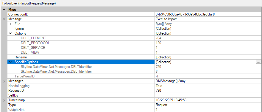 To resolve this, I tried to configure the options to ensure existing elements, protocols, and templates are always replaced. I looked into the SLNET message generated when performing the import manually via Cube, selecting the "Replace existing files" option in the dialog. However, I couldn't inspect the contents of the specificOptions list objects (see attached screenshot).