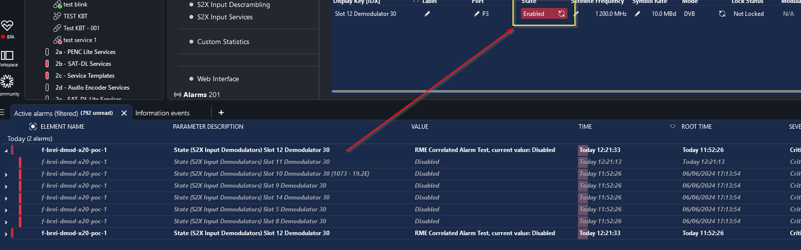 E.G. The initial alarm was generated on 'Slot 12 Demodulator 30' for the value Disabled but now the value has changed to Enabled. Expected parameter alarm state would be Normal but the parameter alarm state instead remains Criticial.