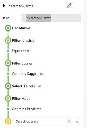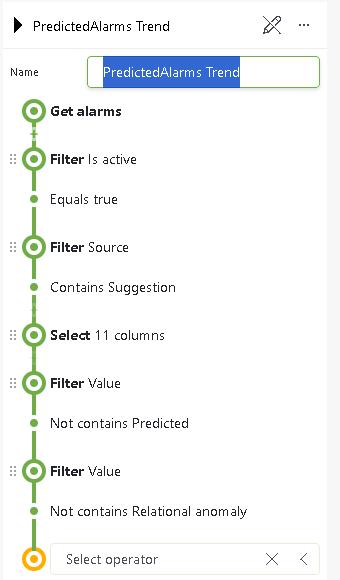 I found I was able to get what I was looking for with the following GQI queries, the first for Predicted Alarms filters Value=Predicted, the second for Trend Anomalies, Value is filtered to Not Include Predicted or Relational. Let me know if you see a better way.
