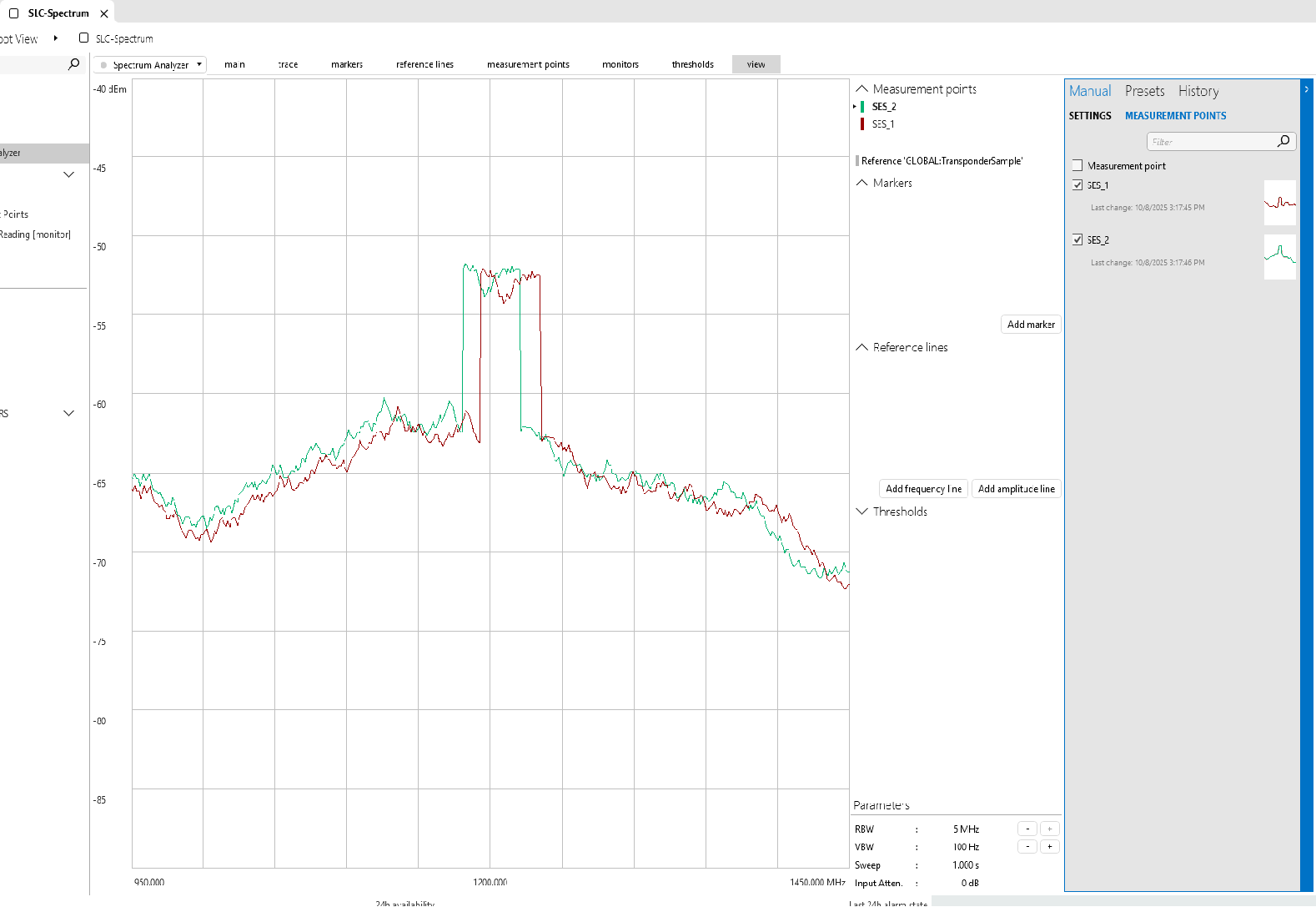 Currently, we are able to display the Spectrum trace and Measurement Point selection. The user is able to hold the ctrl key and make multiple selections. However, the Spectrum display just cycles through the selections as a single trace display rather than combined trace as shown below.