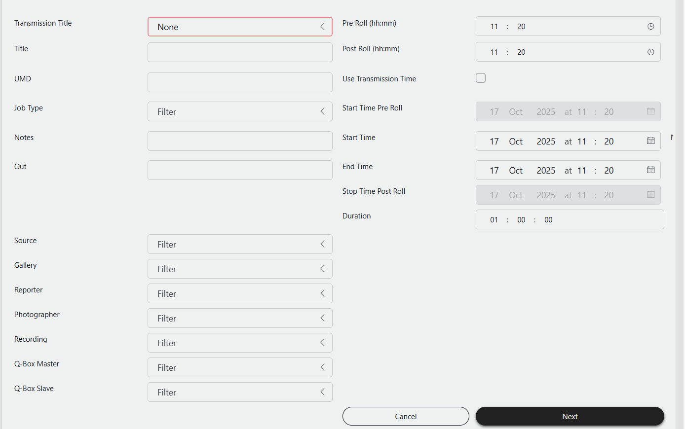 Now, when filing in the fields, the user uses Tab on the keyboard. And once using Tab, it takes them from left to right (on the image that means filling in transmission title, then prepoll time, then title etc.). The user wishes to have this top to bottom (in this case transmission title, title, UMD etc.).