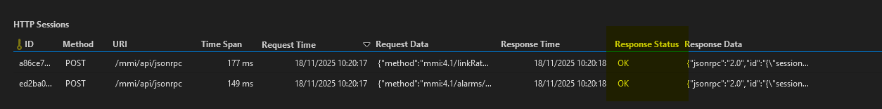 • Under the General page, there is a pagebutton/subpage for 'HTTP Communication...'. Would it be possible to enable the Logging state at the top of this page? This stores the request and responses in the table for a clearer overview. It would be useful to know the first row which is NOT having a 'OK' value for the column 'Response Status'. This failing API request might be the reason for the Authentication error status.