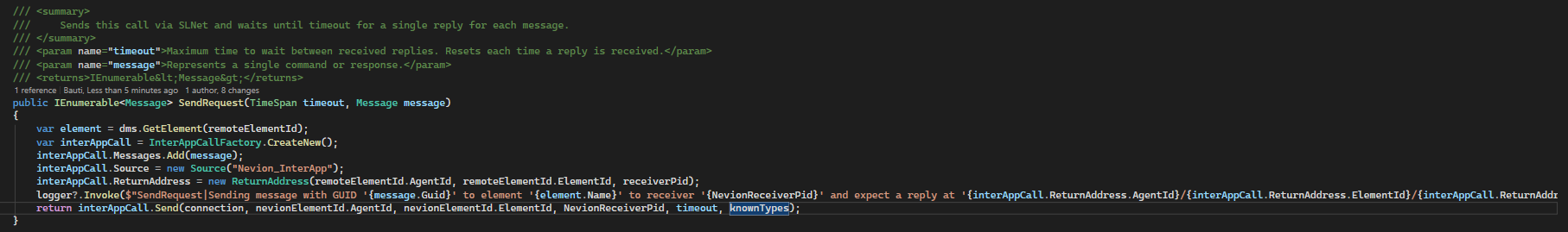 If an IEnumerable is backed by work with side effects (like sending an InterApp message in this case) that work will run every time the sequence is enumerated. This can result in the same request being sent multiple times without it being obvious.