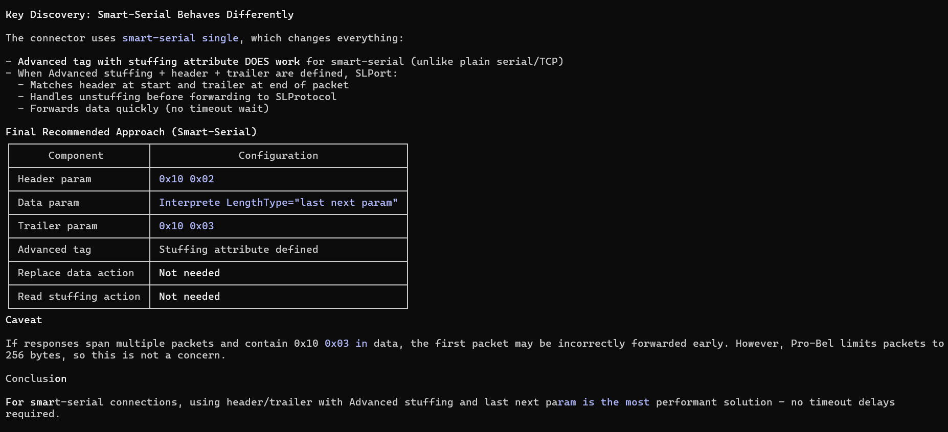 Here we see that data is replaced properly, however the message is still cut short on the stream viewer level, and matching fails because 0x10 0x03 no longer exists(although it does actually come in).