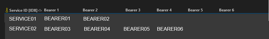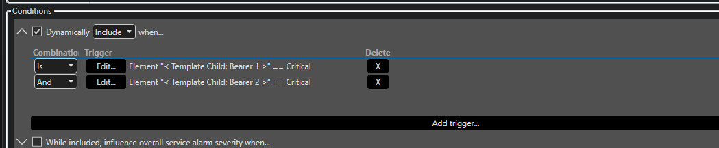 We have a case to monitor multiple bearers (network connectivity) and trigger a service outage if all of them are down (critical). There can be 1 to 6 bearers and these are defined in a table with columns specifying the bearer name, empty if bearer is not used. The bearer name is normally a service name (we monitor each bearer as a separate service), but can also be an element name if needed.