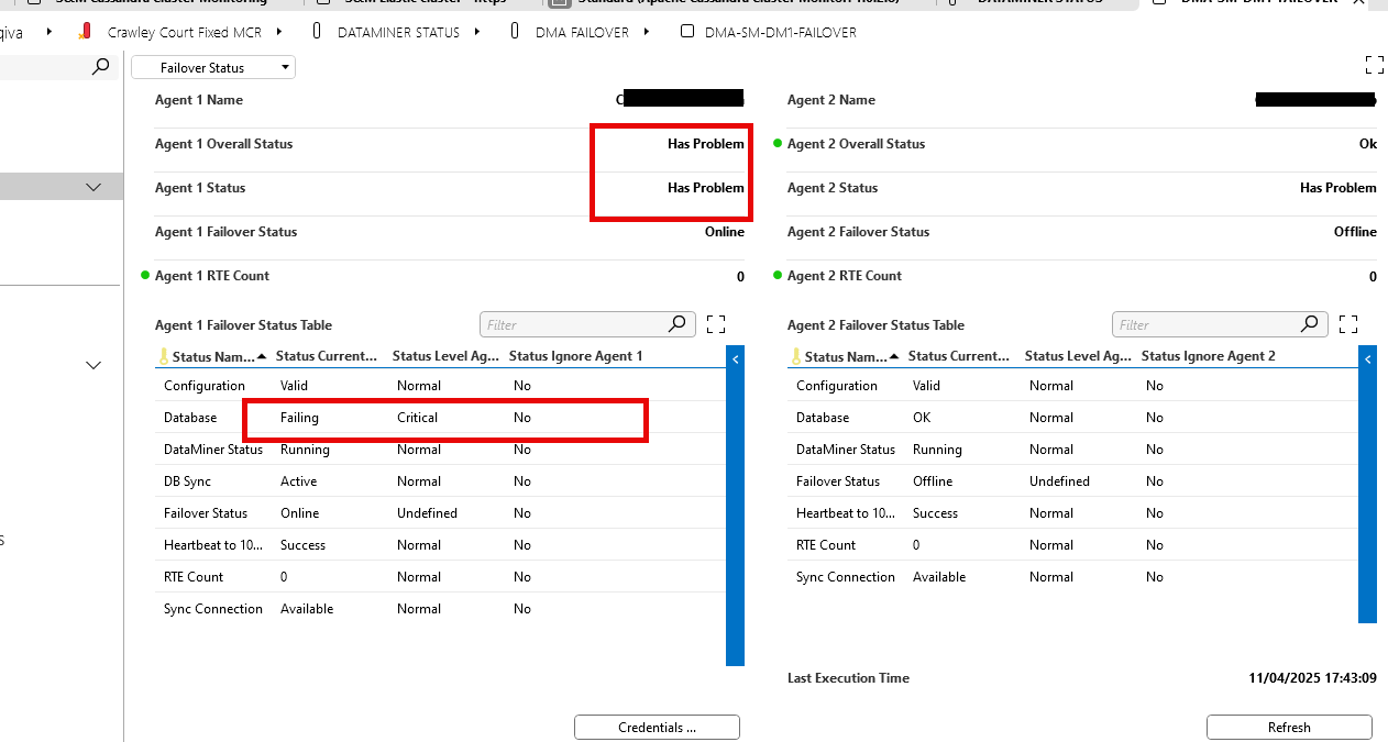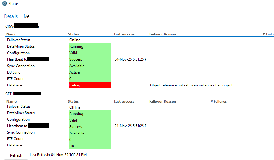 When running the SLCCMigrator tool, we are seeing "Db Failing" indications from many of our server pairs. Everything would seem ok when looking at the DB and DataMiner app. Is this a known feature of running the tool, and is there anything to be concerned about?