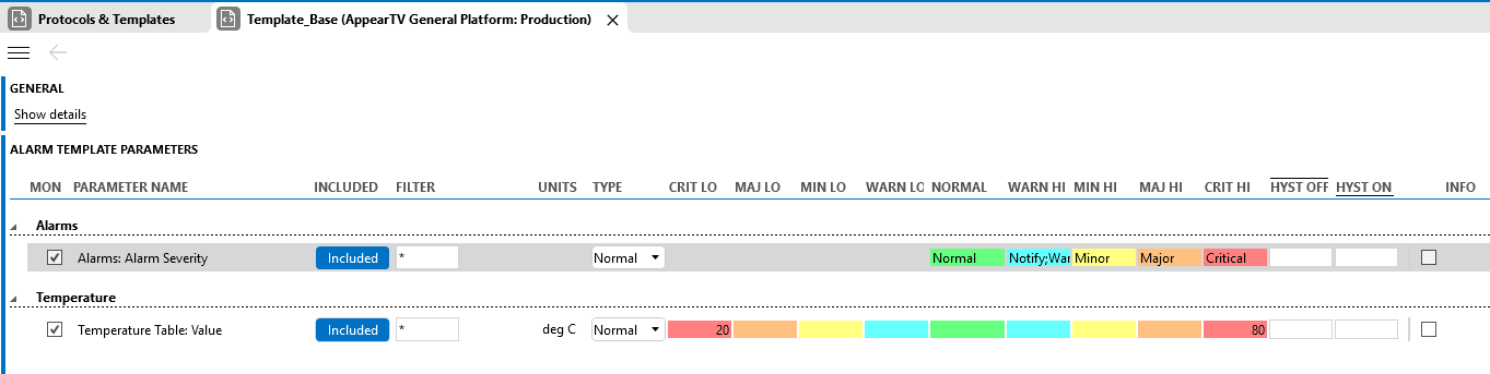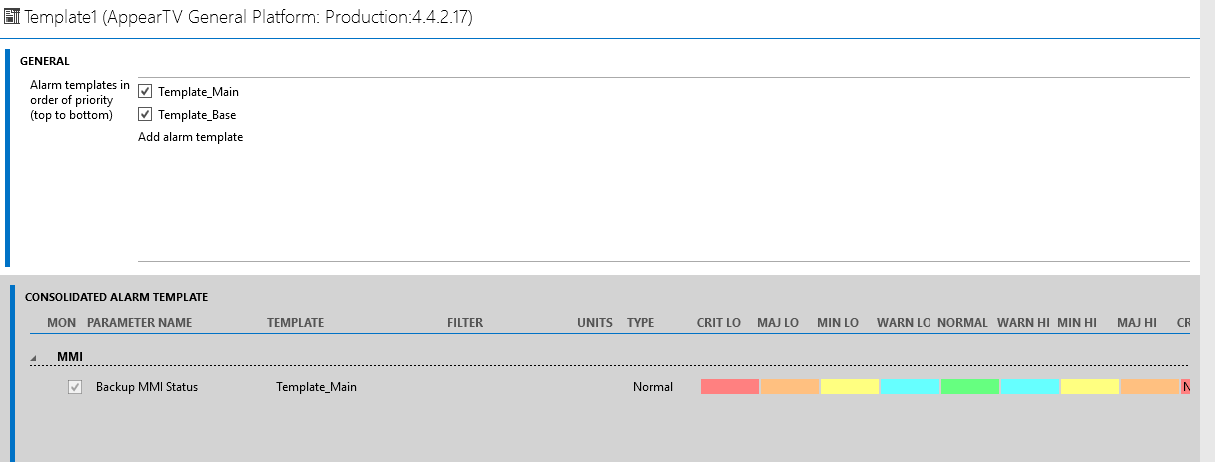 It seems that I can only override alarm values/severities, but not inherit alarms in this way? The consolidated alarm template group only shows the Main alarms, not all 3: