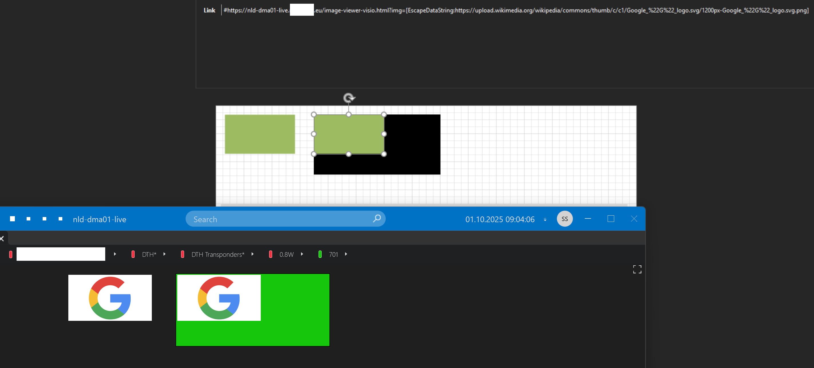 I tried a couple of things and the best solutions ended up a custom HTML page (that you store in the Skyline DataMiner/Webpages folder. By doing this, you have full control of how you would like to visualize the picture. In my case I have allowed for one query parameter (img url). As for adding the severity, you can choose to either pass it along or create another shape in the Visio itself.
