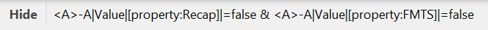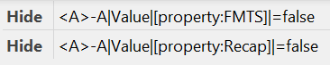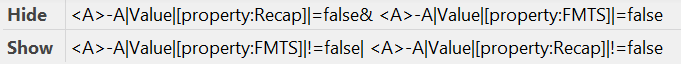 I am trying to Hide/Show the highlighted box and the 2 lines based on the 2 property values from an element ("FMTS" and "Recap").