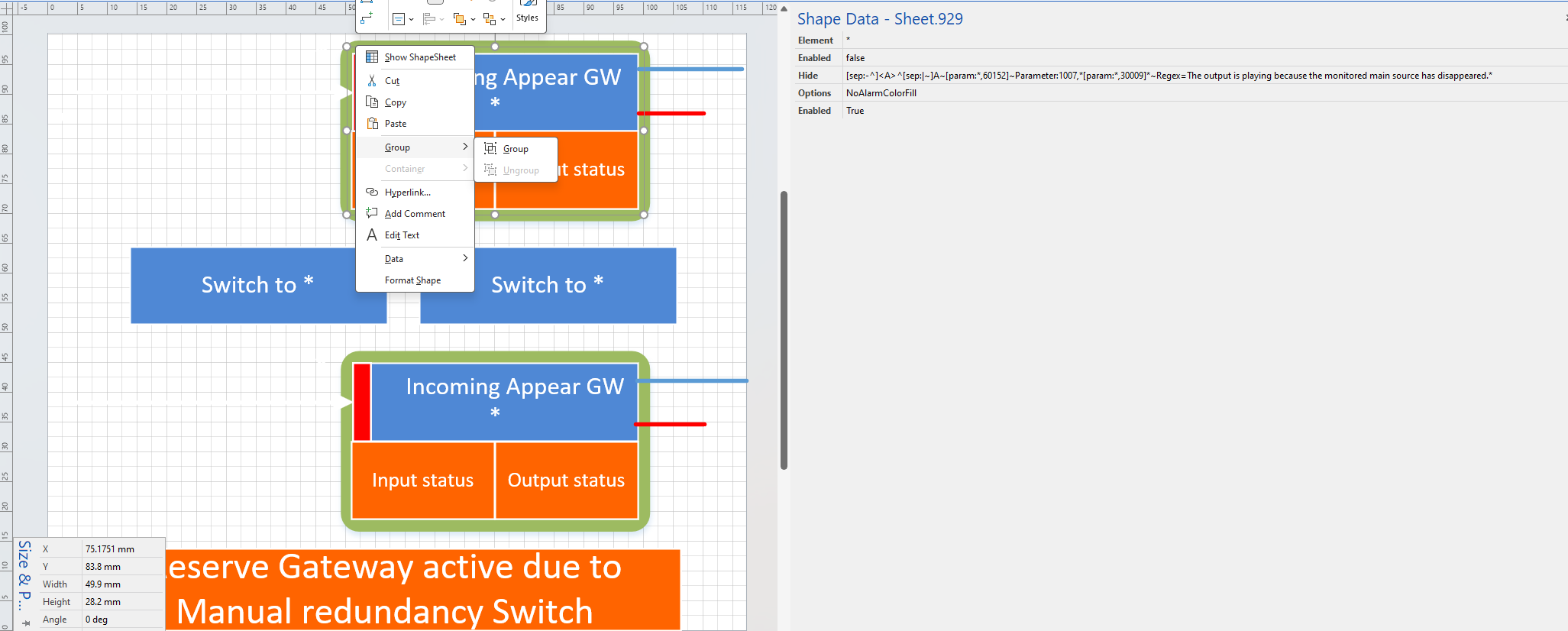 I have a shape in my Visio diagram that’s meant to act as a “frame” around another shape, which is a button. The frame shape has No Fill (so it should be hollow) and no clickable functionality or hyperlinks. Its only purpose is to show or hide based on a regex-based condition, and it’s positioned as far back as possible, so it shouldn’t interfere with the button.