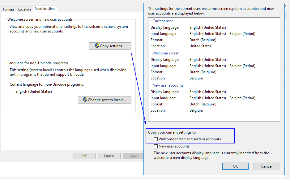 If your logged in user has the correct settings, you could try copying them to system accounts and restarting Windows.