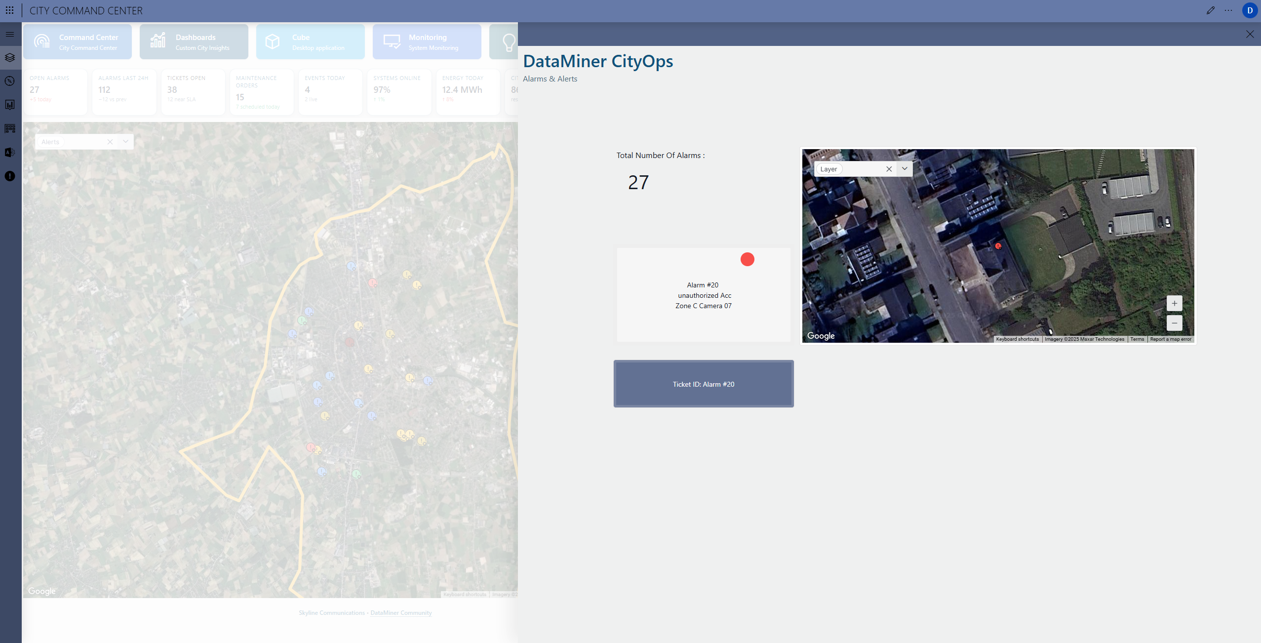 Within each ticket, details such as assignee, creation time, priority, and expected resolution date are automatically tracked. DataMiner ensures that incidents are managed according to standardized workflows, aligned with compliant procedures. Teams can update the state of any ticket, link it to related alarms or work orders, and add notes or attachments for documentation and collaboration.The system automatically correlates related events, highlighting patterns like repeated alarms in the same area or multiple tickets affecting a single facility. This allows the city to move from reactive handling to proactive planning, focusing first on the incidents with the highest operational or safety impact.