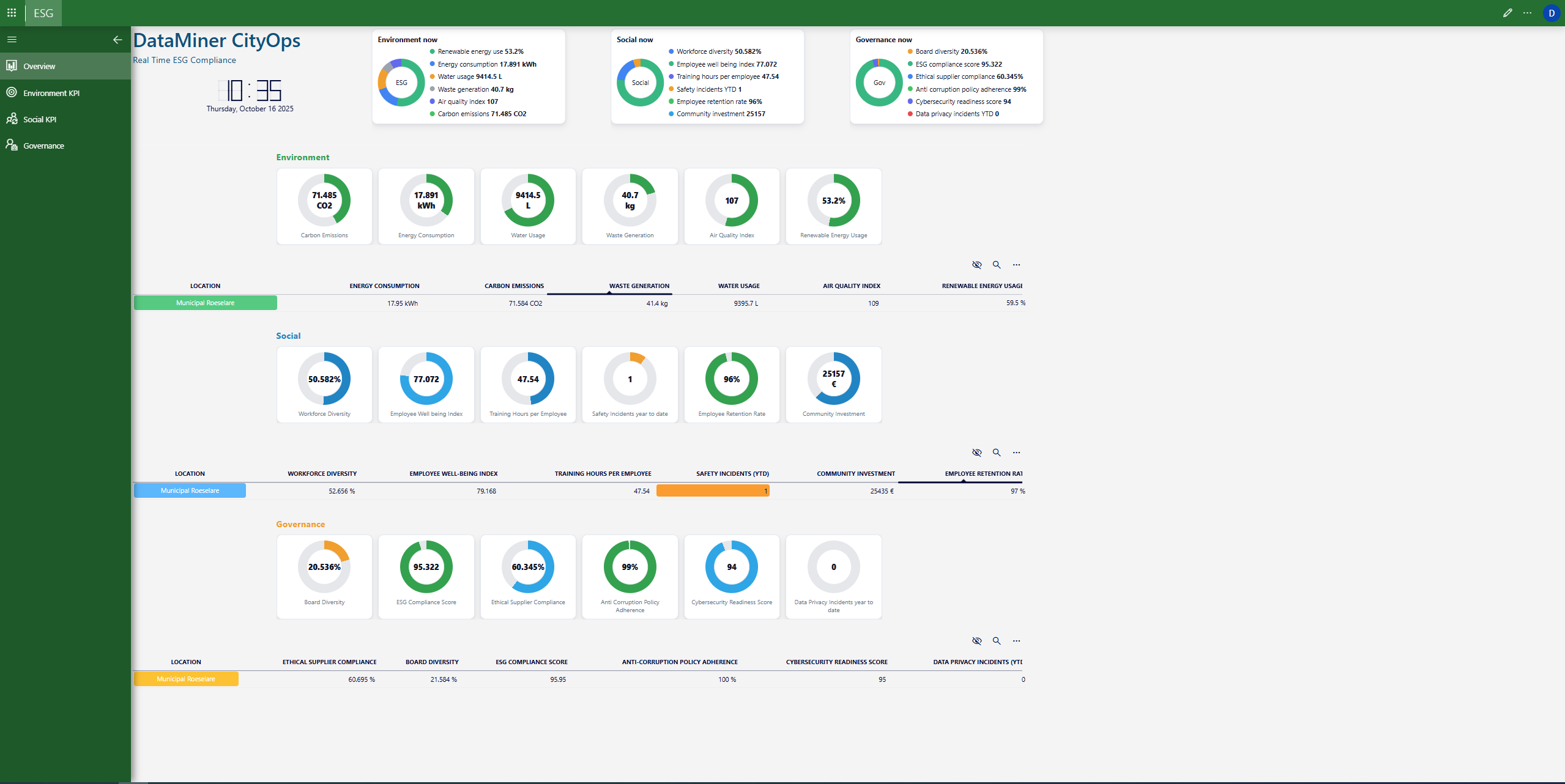 Real-time insight into environmental, social, and governance performance