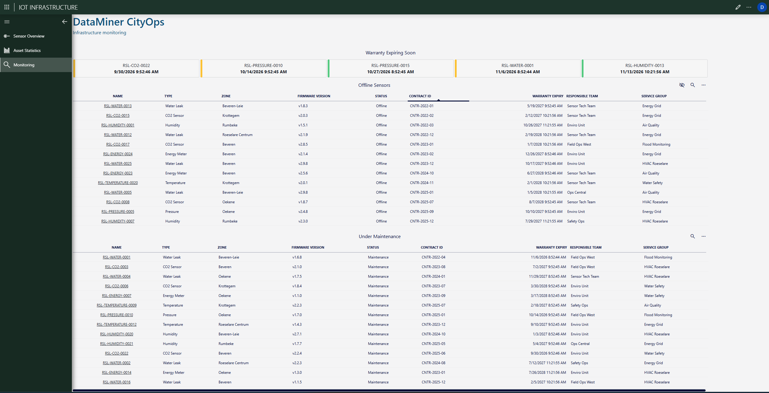 As cities deploy thousands of connected devices across their infrastructure, managing their health and performance becomes increasingly difficult. Teams often struggle to identify which sensors are active, which require maintenance, or when warranties and service contracts are due to expire. Communication interruptions or outdated firmware can go unnoticed until they disrupt essential public services. Without predictive insights, device failures often occur before maintenance teams have the opportunity to intervene.