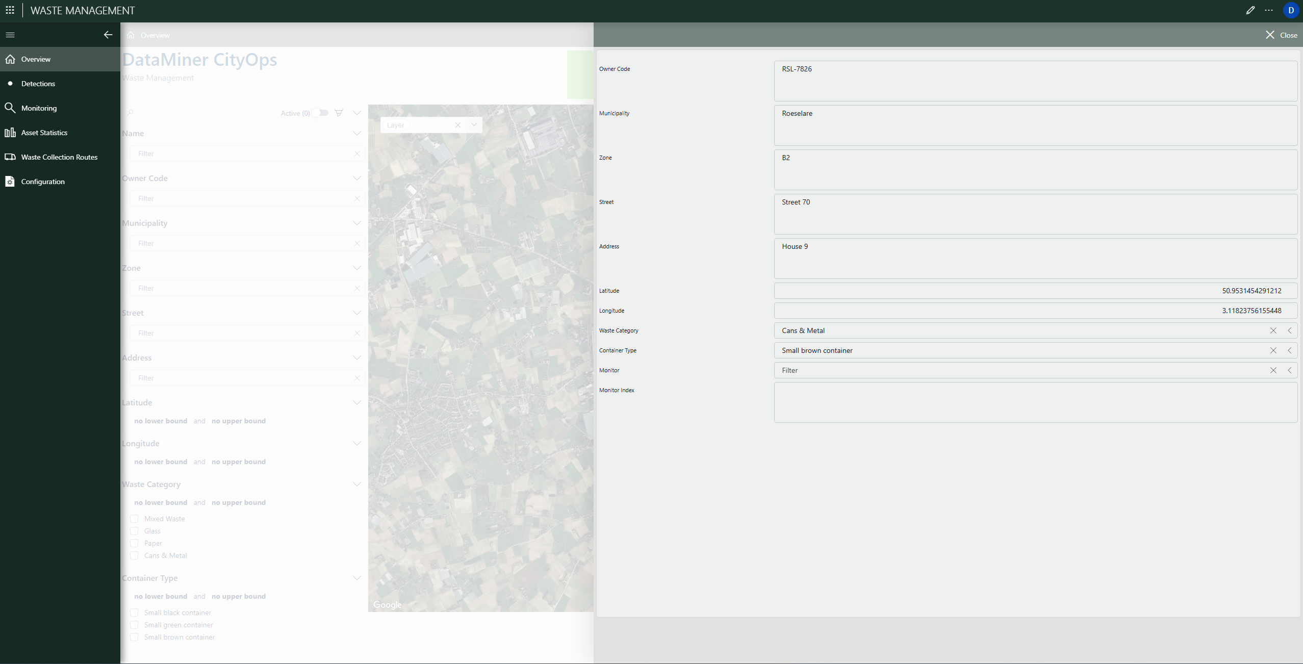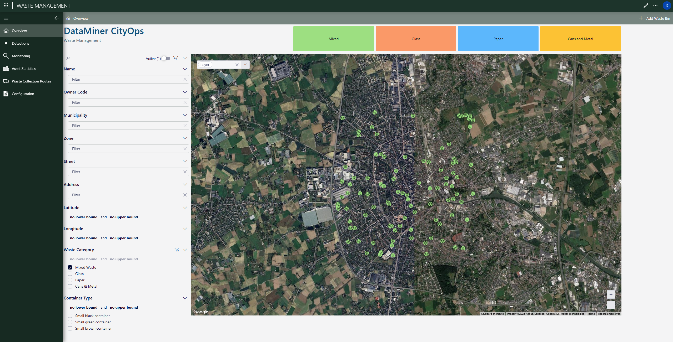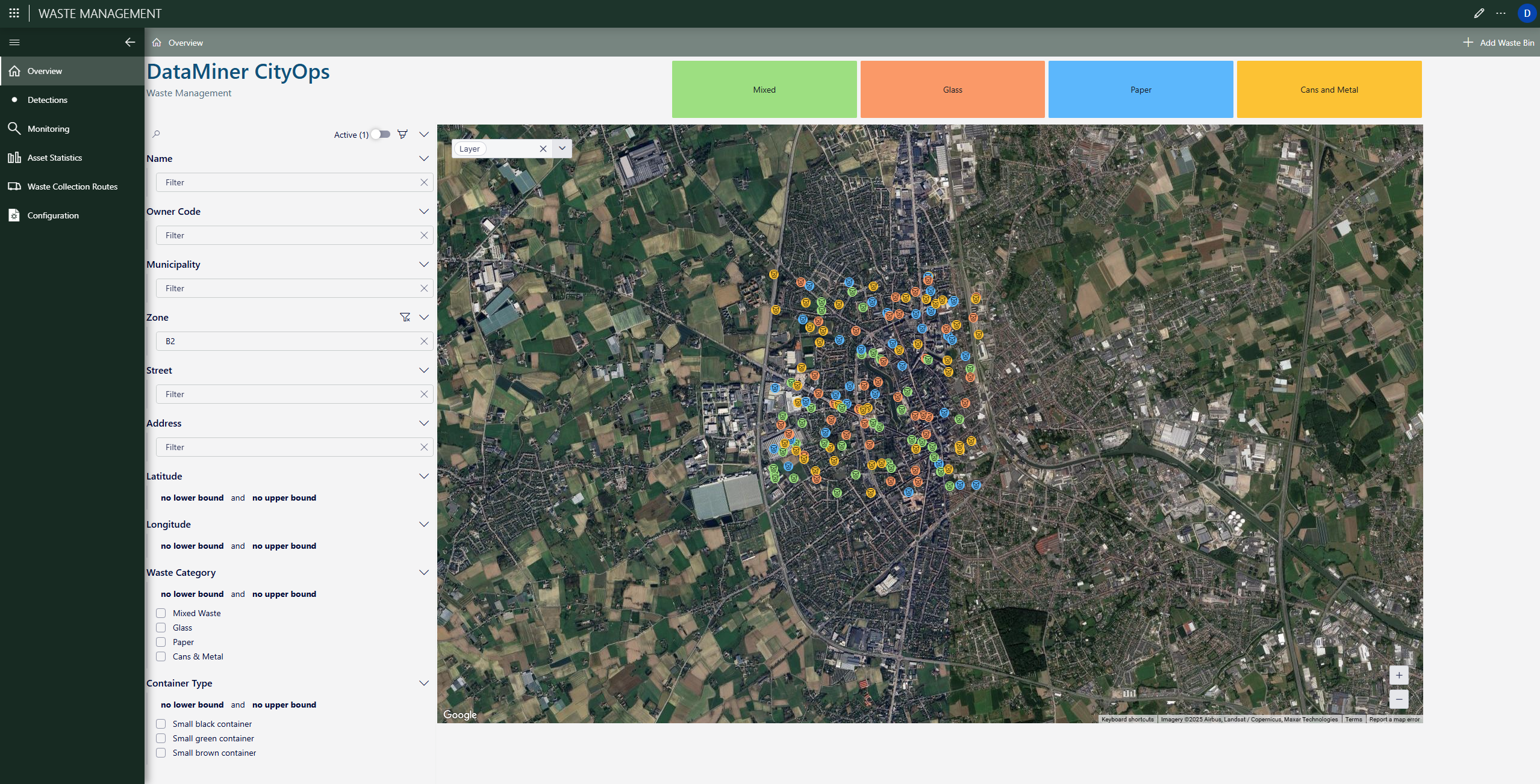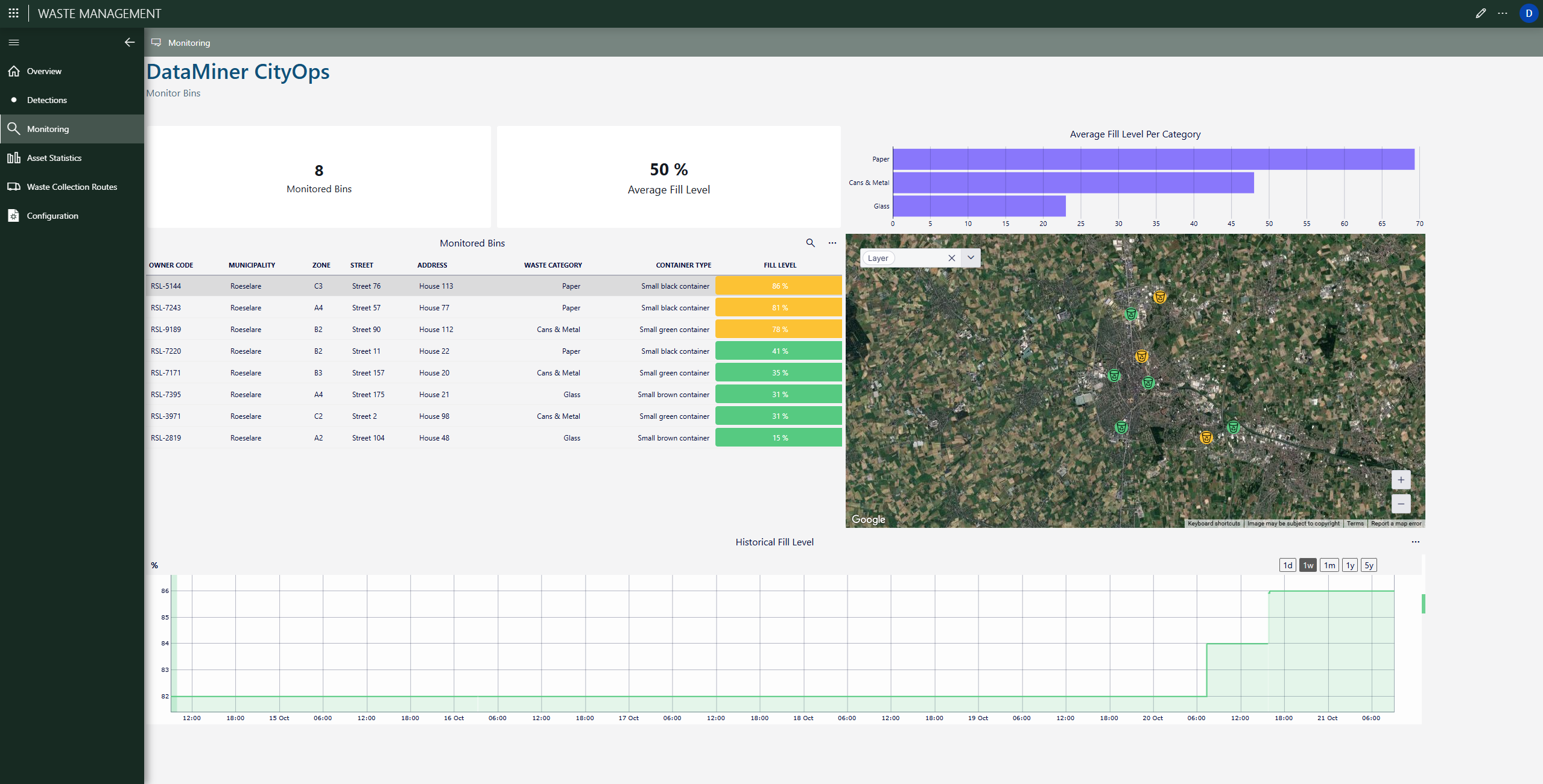The DataMiner CityOps Waste Management module enables cities to run efficient and sustainable waste operations across all zones, integrating asset intelligence, route optimization, and live sensor data. Working in sync with CityOps Asset Management, Planned Maintenance, and Work Orders, it gives municipalities full visibility from container status to collection fleet movement, transforming detections into data-driven actions.