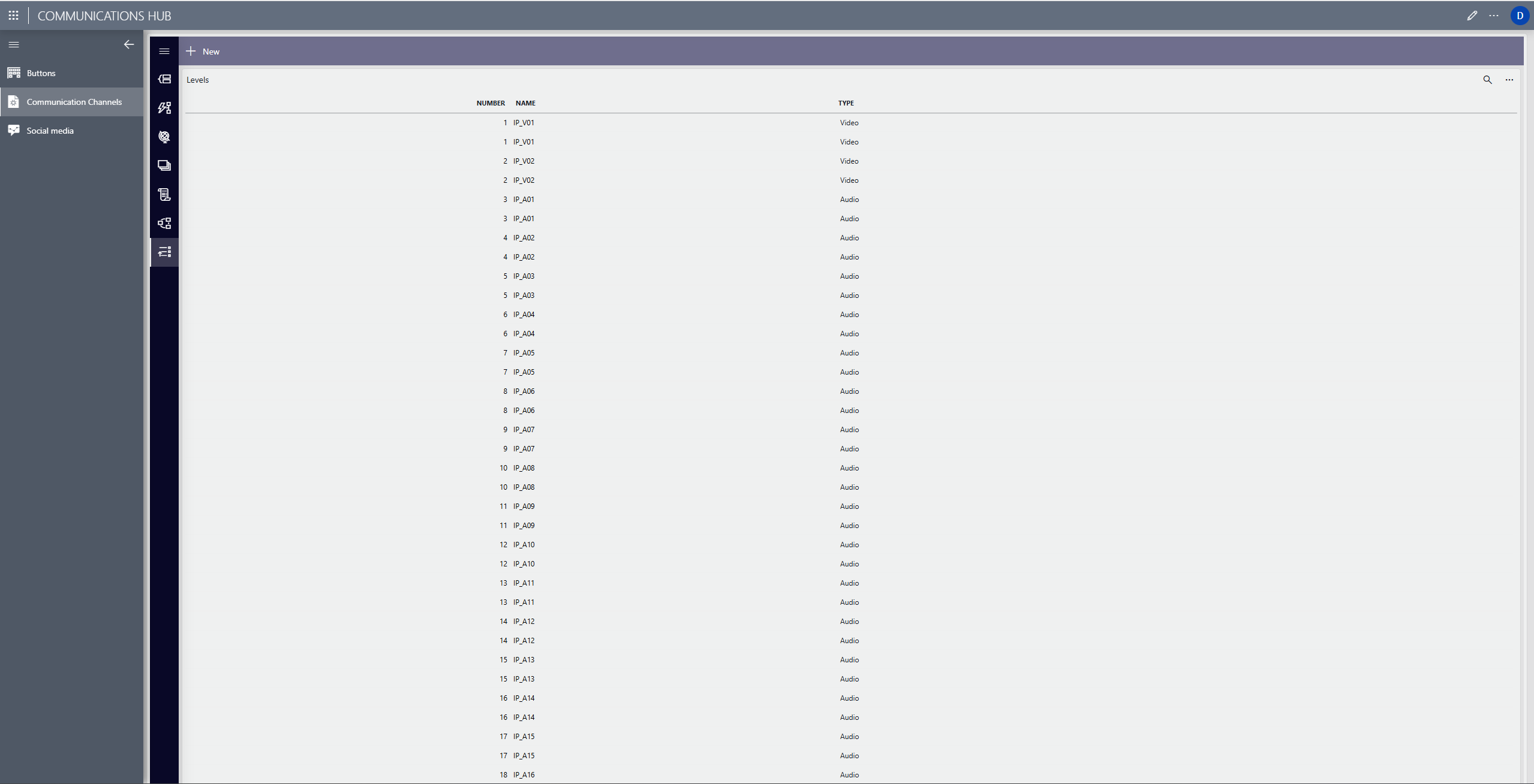 This configuration view defines the hierarchy and structure of all communication levels, covering text, image, audio, and video channels. It ensures seamless integration of communication formats across the ecosystem, supporting citywide broadcast systems, public announcement, radio alerts, and digital signage announcements.