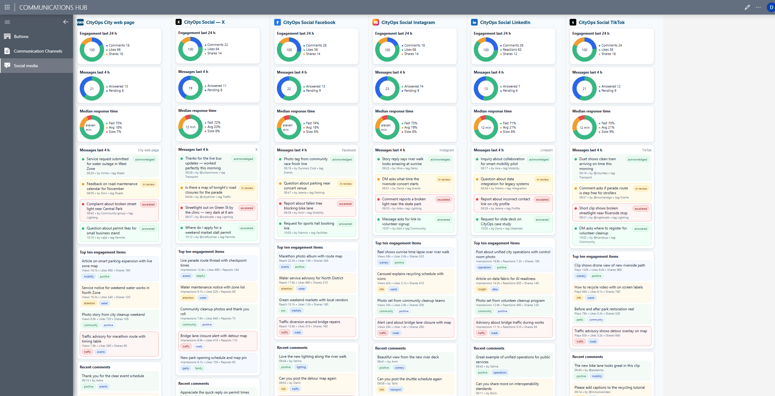 By combining automation, data-driven routing, and channel health monitoring, the Communication Hub ensures full operational awareness and instant responsiveness across all city domains. This module drives agility in non-predictive situations, supports continuous and low-cost digital transformation, and leverages out-of-the-box capabilities for message classification, prioritization, and citizen engagement.