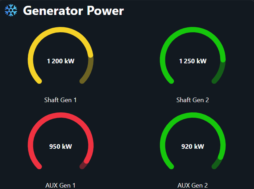 The app provides real-time visibility into power generation, including:• Shaft generators (Gen 1 & Gen 2)